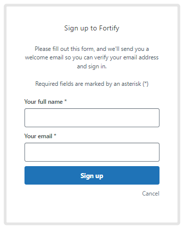 Signing up for the Knowledge Base February 20, 2024 21:57 Updated Creating your account Navigate to the Knowledge Base at https://3dfortify.zendesk.com/. Select Sign in. Select Sign up. Enter your full name and your company email. Verify your account through the confirmation email sent to your inbox. Related to kb new user